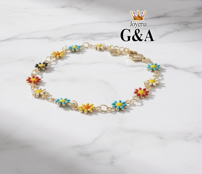 Pulsera Gerberas Multicolor Oro Lam.